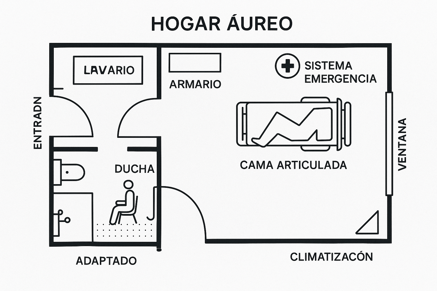 Las habitaciones de HOGAR ÁUREO están diseñadas para ofrecer el máximo confort y seguridad