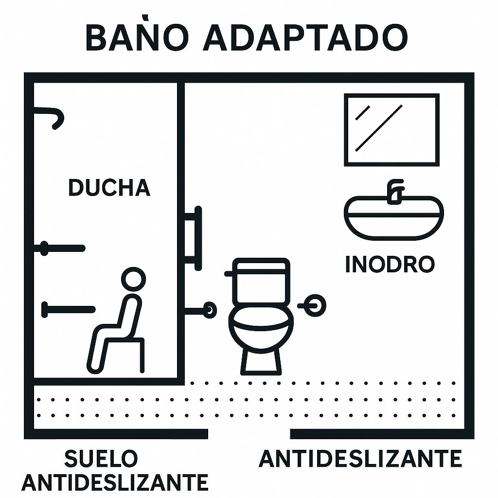 Equipados con barras de sujeción, duchas accesibles y suelos antideslizantes, diseñados para prevenir caídas y facilitar la autonomía de los residentes.